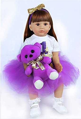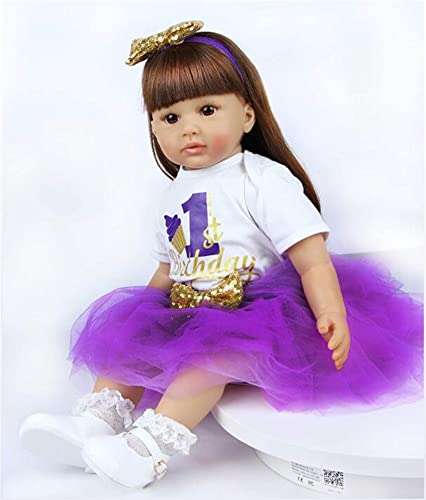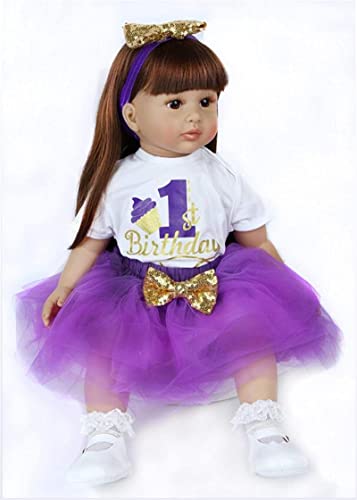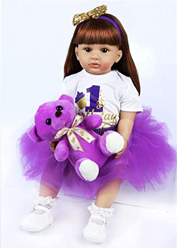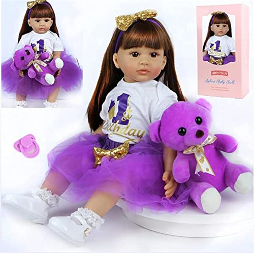 HOMONEY Reborn 24 Zoll Reborn Baby Dolls Mädchen Vinyl Weiches Silikon Real Life Handgemachtes Neugeborenes Realistisches Mädchen in Lila Kleid Babys Reborn Puppe Jungen Und Mädchen Spielzeug