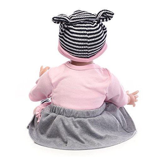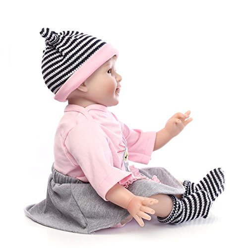 Material – Das Baby ist jeder Silikon Vinyl und Stoff. Das Baby hat einen weichen Vinylkopf und 3/4 Gliedmaßen und einen schönen weichen Körper jeder Baumwolle. Du kannst sie nicht baden.