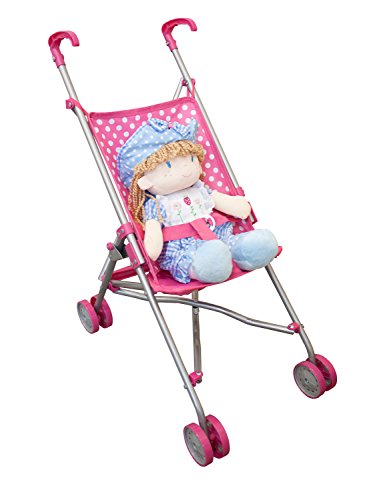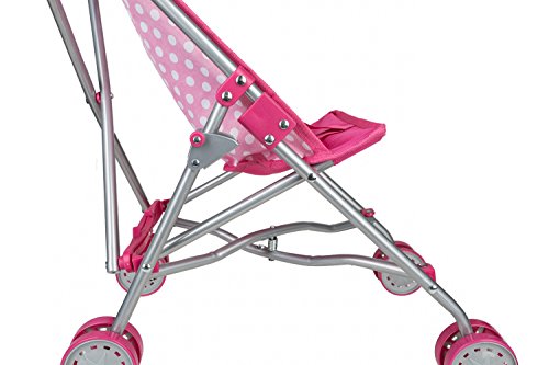 Idena 40068 – Puppenbuggy zusammenklappbar, pinker Bezug mit niedlichem Punktemotiv, Schiebehöhe ca. 55 cm