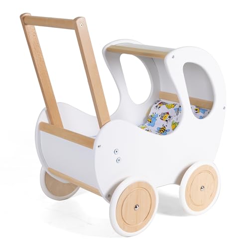 MEIN ERSTER PUPPENWAGEN: Was stattdessen ein toller Puppenwagen ganz FSC-Holz (MDF)! Dieses Janod-Spielzeug sieht ganz als ein echter Kinderwagen und begleitet Ihr Spross bei seinen Abenteuern. Es kann seine Lieblingskuscheltiere geschenkt bekommen und die Großen imitieren.