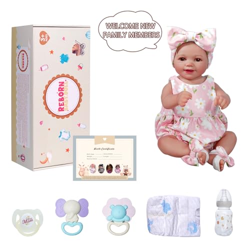 JIZHI 17 Zoll Lebensechte Echte Babygröße – Reborn Mädchen Baby Puppe Süßes Lächeln – Realistische Neugeborene mit Zubehör Mädchen Junge Spielzeug Geschenk