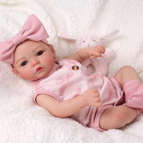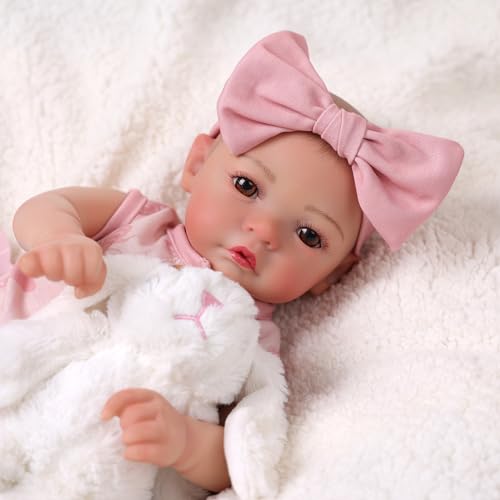JIZHI Reborn Mädchen Baby Puppe – 17 Zoll Lebensechte Echte Babygröße Verwurzeltes mit weichem Baumwollkörper – Realistische Neugeborene Babypuppen (Blaue Augen)