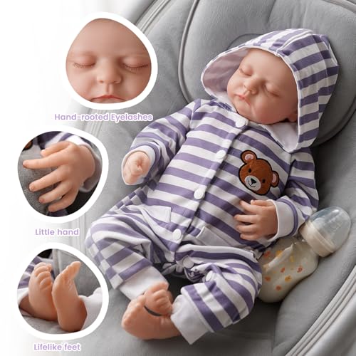 🦓🦓Die Haut unserer Reborn-Babypuppe ist sehr zart und elastisch. Der Vinylkörper des Reborn-Babys hat simulierte Falten. Unter der süßen Schlafhaltung der lebensechten Babypuppe können Sie die handgestochenen Wimpern deutlich sehen. Dieses Reborn-Baby hat strukturiertes, handbemaltes Haar. Echte Babypuppen, die echt aussehen.