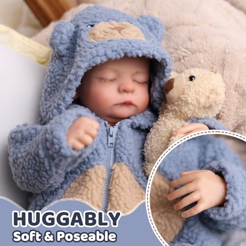 JIZHI Reborn Puppe Junge – 20 Zoll Lebensecht Babypuppen Stoffkörper Augen Geschlossen – Realistisch Puppen mit Zubehör für Kinder ab 3 Jahren