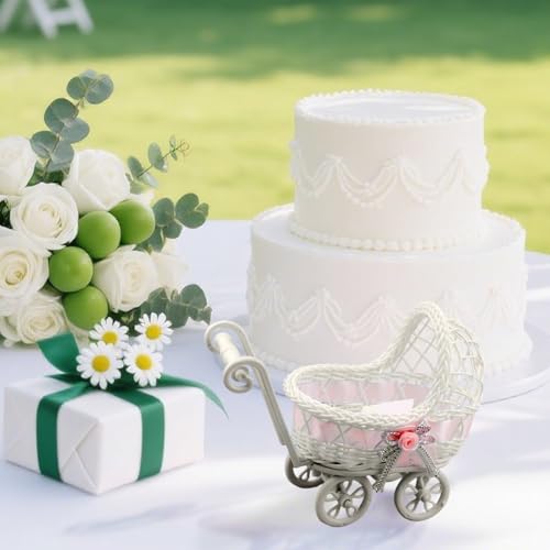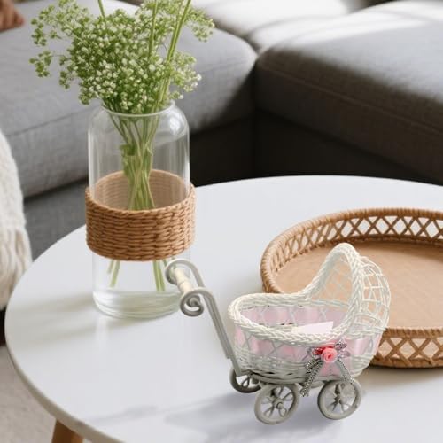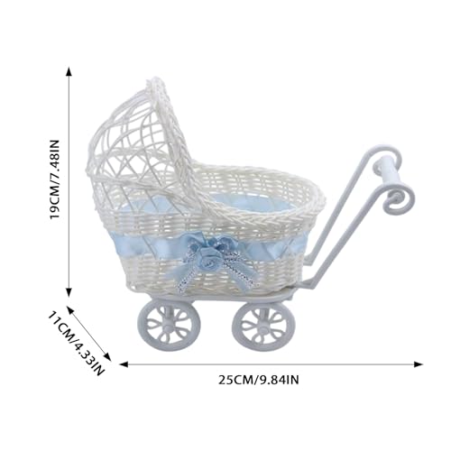 Kinderwagen Dekoration – Mini-Buggy,Rattan-Kinderwagen Puppenwagen Gewebter Blumenkorb Babyparty-Mittelstück Kinderspielzeug,Interessante Dekoration (A)