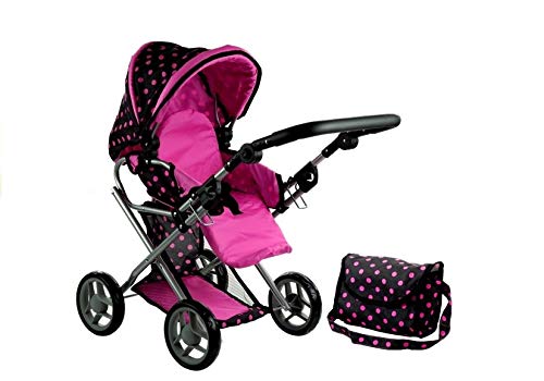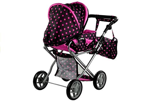 Lean Toys Puppenwagen Alice Kinderwagen Puppe Babytrage Set Puppenkarre Wagen Schwarz