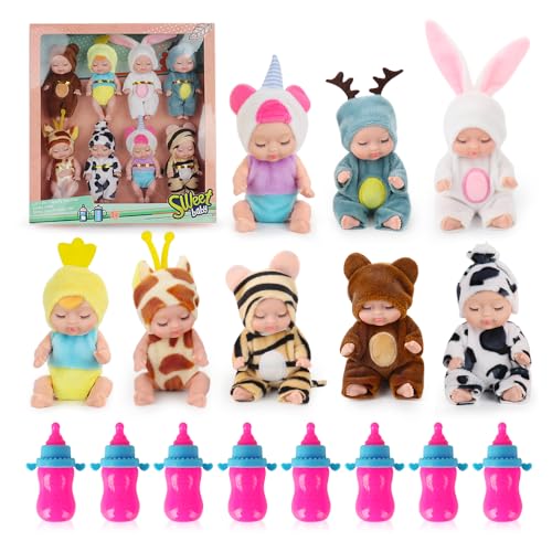 LICHENGTAI Mini Puppenspielzeug Newborn Baby Reborn Mini Schlafende Wiedergeburt Puppen Kinder Mädchen Waschbare realistische Silikon Puppen Miniatur Puppenspielzeug für Kinder Jungen Mädchen