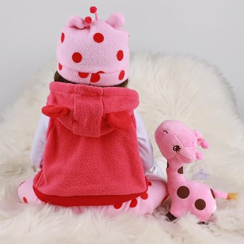 🎀Fröhliches Design: Das farbenfrohe, gepunktete Outfit und die niedlichen Plüschtiere verbreiten gute Laune.reborn baby mädchen 55 cm