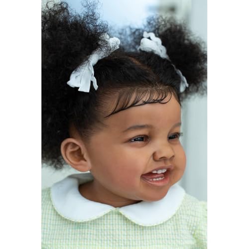 Cute Reborn-Baby-Puppe: runde Wangen, explodierende Locken, braune Augen alle offenbaren Niedlichkeit, die ein kleines Mädchen so niedlich Blick auf Sie mit angehaltenem Atem ausschlagen kann!
