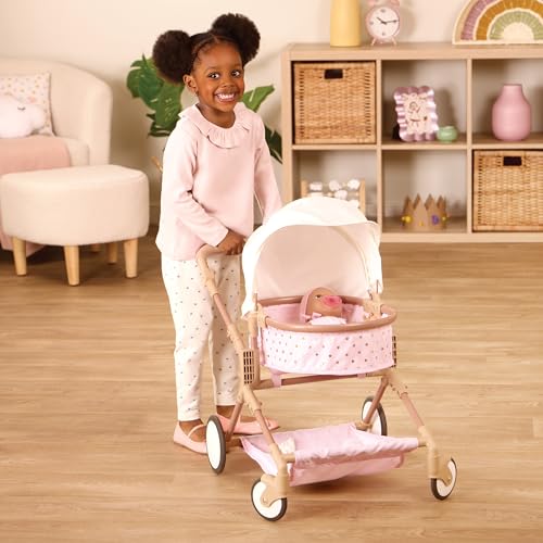 Spazieren gehen: Der LullaBaby Kopie-Kinderwagen hat ein niedliches rosa Design mit goldenen Sternen und ist perfekt im Rahmen, um Zwillings-Babypuppen überall hin mitzunehmen (Baby Puppen abgeschlossen erhältlich)