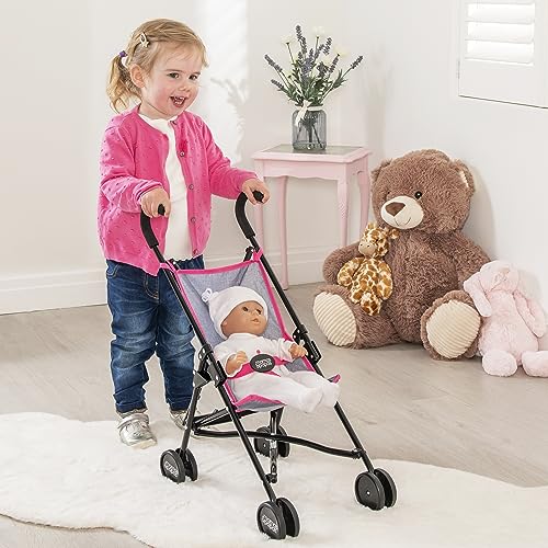 Mamas & Papas Babypuppenwagen für Kinder | Leichter rosa Kinderwagen mit Regenschirmfalte | Kleinkind-Rollenspiel-Buggy & Kinderwagen | Grau & Rosa Puppenwagen für Mädchen & Jungen ab 3 Jahren
