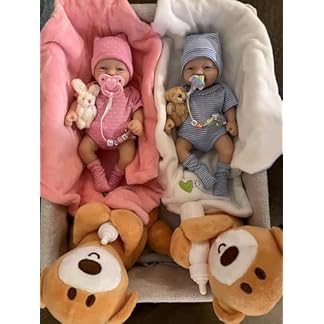 【Sie erhalten】 Mini-Silikon-Baby (2 Stück), Kleidung (2 Stück), Babyflaschen-Schnuller (2 Stück). Bitte überprüfen Sie zuerst die süße Puppe, um sicherzustellen, dass sie in gutem Zustand ist, wenn Sie sie erhalten. Bei Fragen können Sie sich gerne an uns wenden.