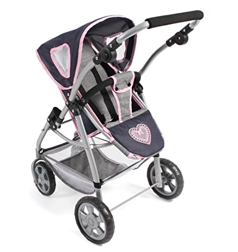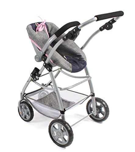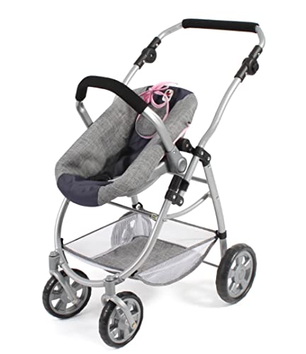 Puppenwagen Emotion All In, 3in1 Puppenwagen-Set bestehend aus Babywanne, Sportsitz und Autositz, Melange Grau-Navy