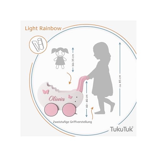 Der handgefertigte TukuTuk Puppenwagen ist das perfekte Geschenk statt dessen Kinder ab 1 Jahr. Mit der Möglichkeit zur Personalisierung mit einem Namen wird jedes Abschnitt zu einem einzigartigen Erinnerungsstück. Sämtliche hochwertigem Naturholz gefertigt, überzeugt der Wagen durch kindgerechtes Design, abgerundete Kanten und robuste Bearbeitung. Dank der weichen Farbtöne in Rosa und Weiß passt er ideal ins Kinderzimmer und fördert spielerisch die Motorik. TukuTuk – wo Spielzeug mit Herz entsteht.