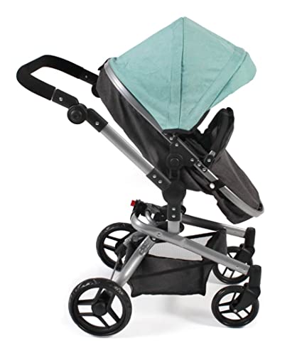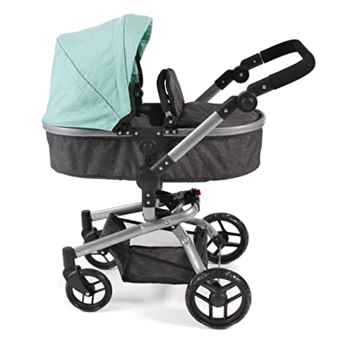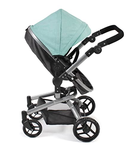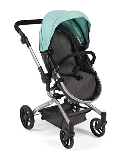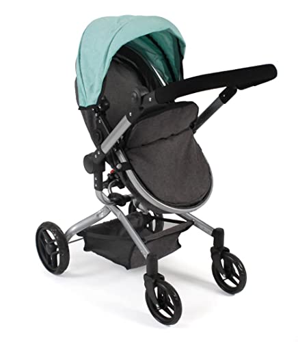 Puppenwagen Yolo, 2in1 Kombipuppenwagen für Kinder von 4 bis 8 Jahren, Melange Anthrazit-Mint