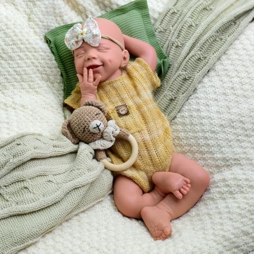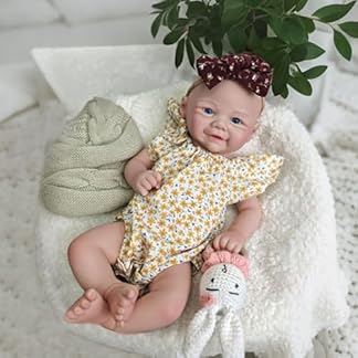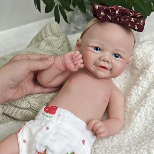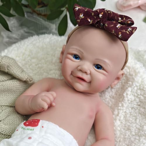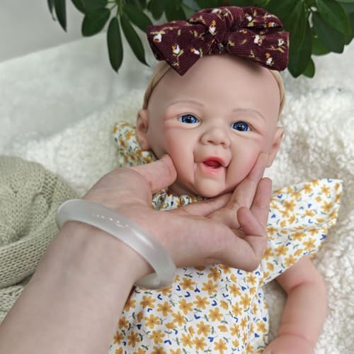 Exquisite handgefertigte Details: Diese Ganzkörper-Babypuppe aufgebraucht Silikon mit weicher, mikroroter Haut (denn ein echtes Neugeborenes), einem bezaubernden lächelnden Gesicht und funkelnden blauen Augen ist handgefertigt und verfügt über zarte Adern, Fältchen und Babyfalten für unübertroffenen Realismus.