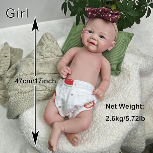 Ultrarealistische Vollsilikon-Babypuppe: Diese 43 cm große, lebensechte Neugeborenenpuppe aufgebraucht hochwertigem Platinsilikon verfügt über eine handgemalte Hautstruktur, einen anatomisch korrekten Körper und eine weiche, realistische Haptik – exakt denn ein echtes Baby. Im Gegensatz zu Vinylpuppen ist sie langlebig, nicht klebrig und reißfest.