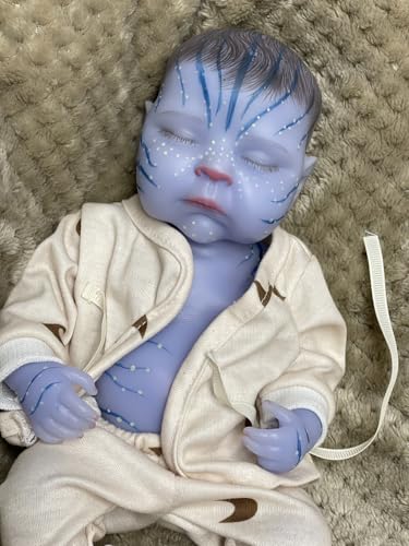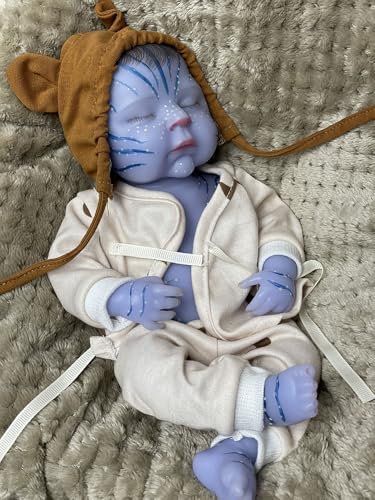 Aniiyy Silikon-Babypuppe, realistisch, 33 cm, Reborn-Babypuppe, Silikon, Ganzkörper-Puppe, weiche blaue Haut, schlafend mit Kleidungsset stattdessen Kinder ab 3 Jahren