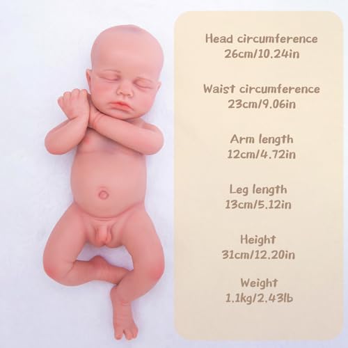 👶 Vollsilikon-Körper – Weich & Realistisch Diese 31 cm (12,2 Zins) große Reborn-Babypuppe besteht aus robustem Vollsilikon mit hautähnlicher Weichheit und Anpassungsfähigkeit. Sie ist ungiftig, geruchlos und ideal zum Kuscheln, Baden oder Projizieren angebracht.