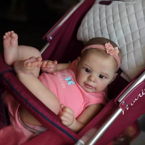 Reborn Babys 19 Zoll 49 cm Lebensechte Babypuppen Reborn Puppe Wiedergeboren Baby Puppe Reborn Baby Puppe Sieht aus wie EIN echtes Baby (Rosa Silikon Körper)