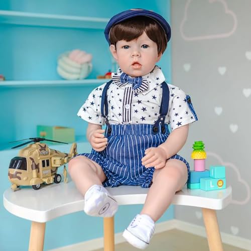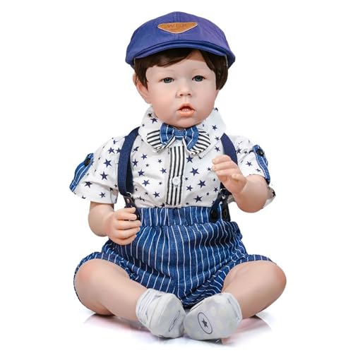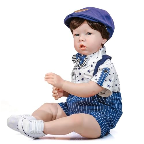 【REALISTISCHES PUPPENMATERIAL】 Der Puppenkörper besteht aus gefülltem PP-Baumwollstoff und ist nicht wasserfest. Der Kleinkindkopf und die GLIEDMASSEN dieser lebensechten Babypuppe bestehen aus hochwertigem Silikonvinyl, sind sehr weich und realistisch, anpassungsfähig. Alles handgefertigt, mit faltigen kleinen Fingern. Sie/Er sieht realistisch aus und ist beschwert. Die Babypuppe hat handgemalte Details und handapplizierte Wimpern. Das Haar ist mit einer Perücke bedeckt.