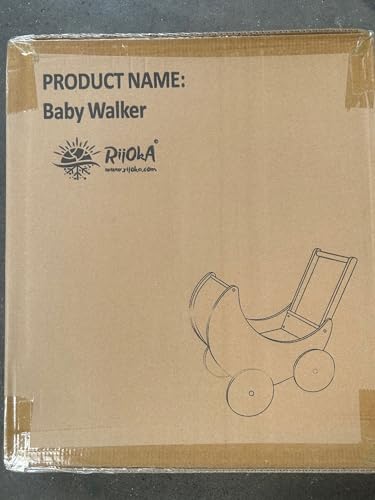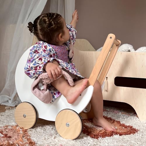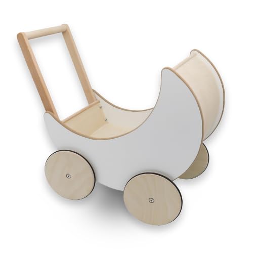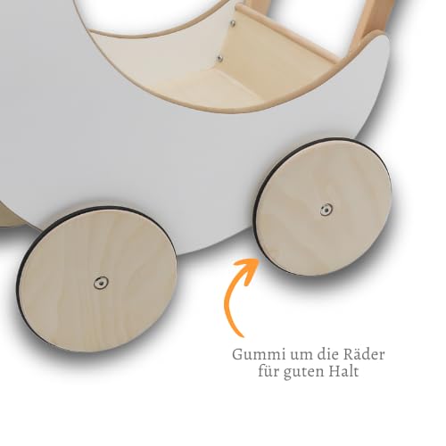 Rijoka Puppenwagen aus Holz – Lauflernwagen für Babys – Kinderwagen aus Holz – 50x30x45cm