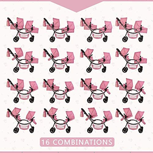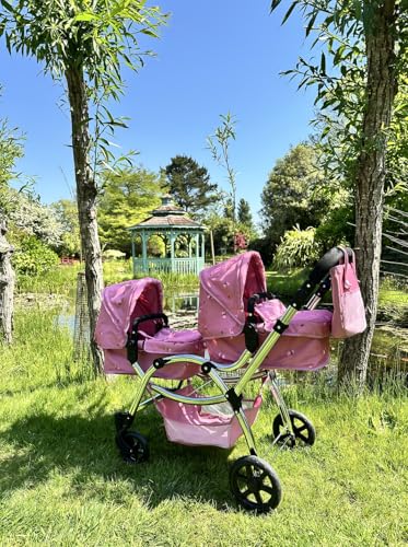 Roma Darcie Zwillingspuppenwagen in Rosa, Geeignet von 3 bis 16 Jahren, Verstellbare Griffhöhe, 16 Kombinationen, Doppel-Puppenwagen