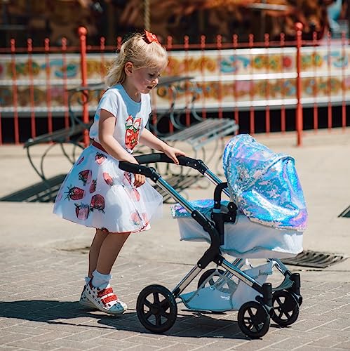 【Entworfen von Amy Childs】 Dieser exquisite Puppenwagen 2 in 1, entworfen von Amy Childs, verfügt über ein glitzerndes Meerjungfrauen-Design, das perfekt für Kinder von 3 bis 9 Jahren ist. Ein Muss für fantasievolles Spielen, es enthält eine passende Wickeltasche für zusätzlichen Stil und Komfort.