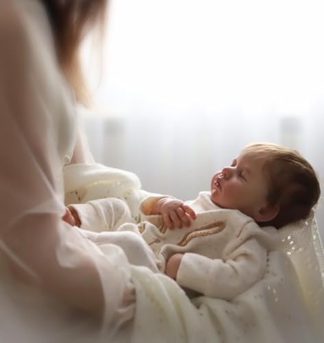 Lebensechte Babypuppe: Diese lebensechte Babypuppe trägt ein stilvolles Baumwolloutfit, Sie können ihn mit Kleidung und Windeln in der Größe eines echten Babys von 0-3 Monaten einkleiden