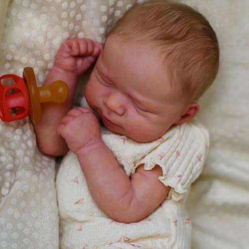 【Realistische Babypuppe】 Er ist Pascale, ein neugeborener Junge schläft süß, seine Größe ist 18 Taxe, er hat weiche volle Vinyl-Gliedmaßen und voller Vinylkörper lässt ihn das echte Baby fühlen, wenn er in Ihren Armen gehalten wird