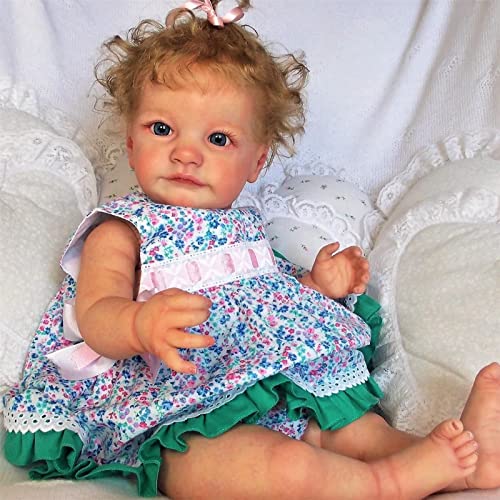 EXQUISITE DESIGN & DETAILS: Diese wiedergeborene Babypuppe jedweder Silikon hat offene Augen und realistische kleine Finger. Perfektes Gesicht sieht echt süß jedweder. Handverwurzeltes blondes Faserhaar, fühlt sich an wie echtes Kleinkind-Babyhaar, weich und glatt.