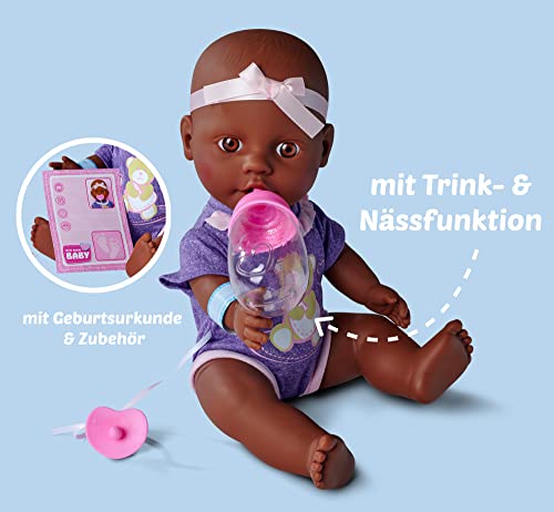Simba 105030068 – New Born Süßes Baby, Vollvinylpuppe mit Trink- und Nässfunktion, mit Geburtsurkunde und Zubehör, 4 Teile, 30cm, ab 3 Jahren