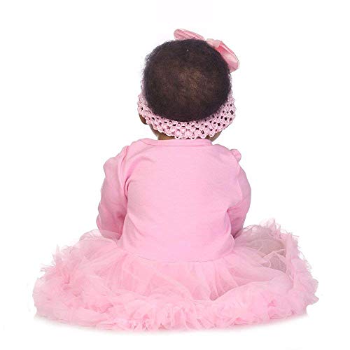 Simulation Rosa Kleid 22 Zoll 55 cm Wiedergeburt Babypuppe Schwarze Babyglieder Silikontuch Körper Spielzeug Geschenk, wiedergeborene Puppen