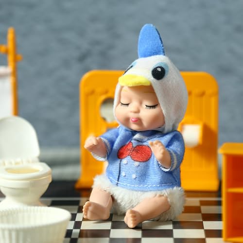 Puppenset: Dieses Mini Reinkarnation Puppenset hat 6 Mini Puppen, jede trägt Kleidung. Jedes Mini Reinkarnation Puppenspielzeug hat realistische Gesichtsausdrücke, und jede Puppe ist 11× 5 cm, klein und exquisit, sehr süß.