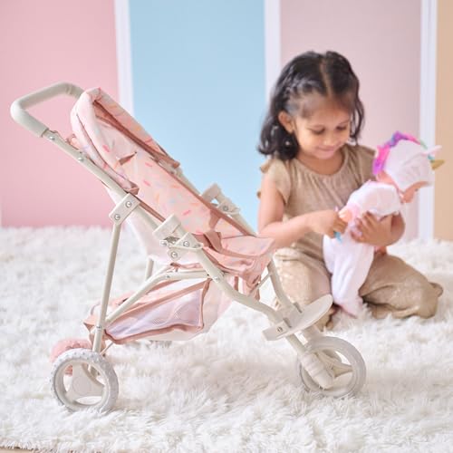 Der Teamson Kids Joggingwagen in fröhlichem Beige mit verspieltem Konfetti-Muster ist der perfekte Begleiter für kleine Pflegekräfte. Dieser Kinderwagen kombiniert realistische Funktionen mit lustigem Design und fördert Empathie, Kreativität und motorische Entwicklung, während Kinder Rollenspiele pflegen. Der verstellbare Baldachin schirmt Puppen ab, während der weiche, ergonomische Griff perfekt für kleine Hände passt. Kinder können ihre Puppen mit dem Dreipunktgurt belastbar anschnallen, den Baldachin adaptieren und mit ihrem „Baby“ spazieren gehen. Die leisen, leichtgängigen Räder bewegen sich problemlos auf verschiedenen Oberflächen im Innen- und Außenbereich. Ein geräumiger Aufbewahrungskorb darunter bietet Platz für Puppenzubehör, Spielzeug oder Snacks, wodurch jeder Ausflug authentischer wird. Der Kinderwagen lässt sich zum Verstauen oder Reisen zusammenklappen, und eine Sicherheitsverriegelung sorgt dafür, dass er während des Spiels abgetaut bleibt. Entsprechend für Puppen 15-18 Taxe (38-46 cm), bietet dieser Kinderwagen ein stabiles, langlebiges Design, das zum kreativen Spielen inspiriert. Kinder lernen Verantwortung und üben emotionale Fähigkeiten und entwickeln gleichzeitig Absprache und Selbstvertrauen. Ob beim Spielen zu Hause, beim Besuch des Parks oder beim Spazierengehen mit der Familie, dieser Kinderwagen hilft, wertvolle Erinnerungen zu buckeln und die Bindung zwischen Nachfahre und Puppe zu stärken.