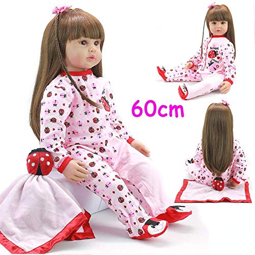 THj 60cm weiches Vinyl Silikon Leben wie wiedergeborenes Babypuppenmädchen Langes Haar Neugeborene Puppen Brown Eye Girl…