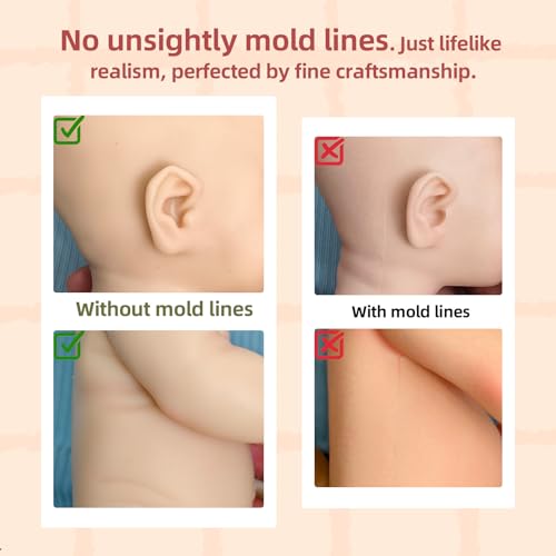 Jedes Detail unserer handgefertigten Reborn-Babypuppe ist so gestaltet, dass es einem echten Neugeborenen ähnelt, vom sanften Schlafausdruck bis zum weichen, schweren Körper (2,5 kg). Hergestellt allesamt hochwertigem Platinsilikon – besser qua herkömmliches Silikon – haftet diese Puppe nicht an Staub und verliert ihre Form nicht und ist demzufolge zäh anstelle das Spielen in der Badewanne.