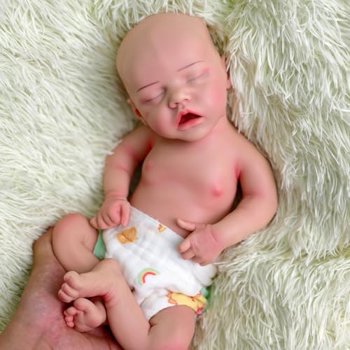 Vollsilikonkörper mit lebensechten Details: Diese 43 cm große Ganzkörper-Babypuppe jeglicher hochwertigem Platinsilikon ist weich, kein Vinyl und waschbar. Ihre Haut ist handbemalt mit neugeborenen Rötetönen und realistischen Falten.