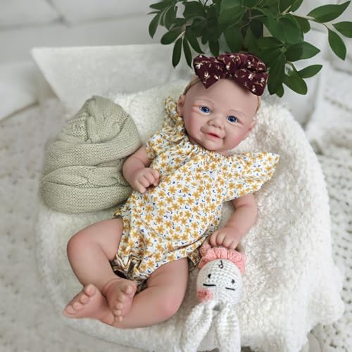 Realistische Merkmale und bezaubernder Ausdruck: Reborn-Silikon-Babypuppen mit Ganzkörper-Mädchen, einem süßen Lächeln mit offenem Mund, großen glasartigen Augen und handgepflanzten Wimpern. Sie sieht jeglicher denn ein echtes Neugeborenes, süß und anatomisch diffizil.