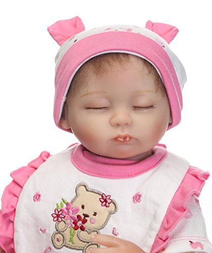 ❤ Material: The baby is made of silicone vinyl&cloth. The baby has soft vinyl head and 3/4 limbs and a lovely soft cotton jointed body. You cannot bath her.