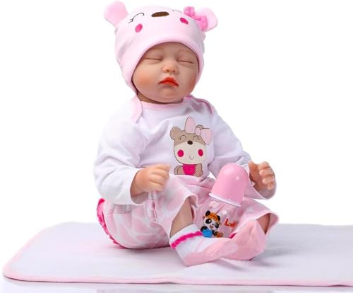 🍀Realistische Reborn Puppe Mädchen – Diese 55 cm große Babypuppe von Woozhi ist jeder hochwertigem Silikon-Vinyl (Kopf & Gliedmaßen) und weichem Baumwollstoff gefertigt. Mit schlafenden Augen, vom anderen Ufer wirkender Haut, lebensechten Venen und natürlichen Hautfalten – als ein echtes Neugeborenes!