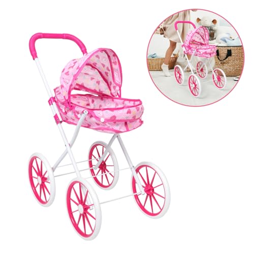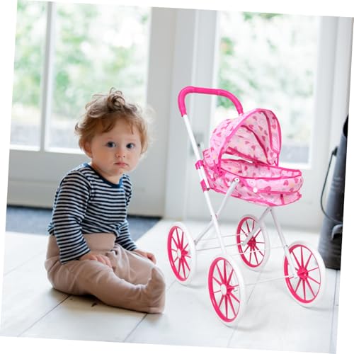 Yardwe Realistischer Puppenwagen Faltbarer Doll Stroller für Rollenspiele Geräumiger Puppen Kinderwagen mit Authentischem Design Fördert Motorische Fähigkeiten Geeignet für Mädchen