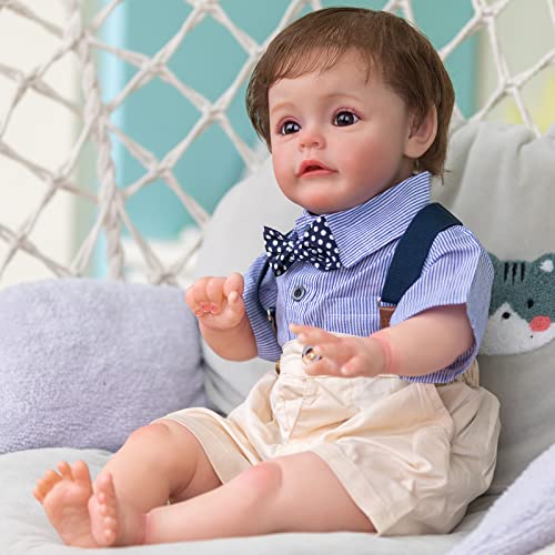 YIHANGG 24 Zoll Junge Reborn Babypuppe 60cm Realistisch 3D-Haut Reborn Kleinkindpuppe Mit Sichtbaren Venen Handgewurzeltes Haar Kuschelweiche Körperpuppe Kinder Geburtstag Weihnachten Geschenk