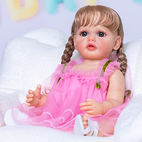 【Ideale Größe】 Die Puppe ist von Kopf bis Fuß 55 cm groß, die perfekte Größe für kleine Hände, um sie überall hin zu verstreben! Die Puppe ist mobil und gewichtet, um sich in Ihren Armen wie ein Neugeborenes zu fühlen.