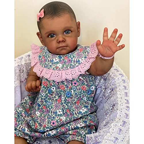 ❋ Afroamerikanische Silikon-Babypuppe, ideal als Geburtstagsgeschenk, Weihnachtsgeschenk, Vorschulaktivität, Heimaktivität, Rollenspiel, Pflegespiel, Ihre Kinder erwerben soziale Fähigkeiten und starke kognitive Fähigkeiten.