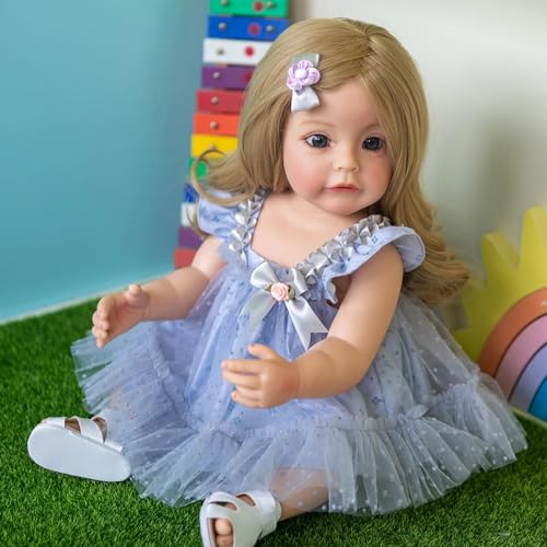 【Ideale Größe】Die Puppe ist 55cm/22inches von Kopf bis Fuß, die perfekte Größe für kleine Hände, um ihn überall hin zu versteifen! Die Puppe ist posierbar und gewichtet, um sich wie ein Neugeborenes in Ihren Armen zu fühlen.