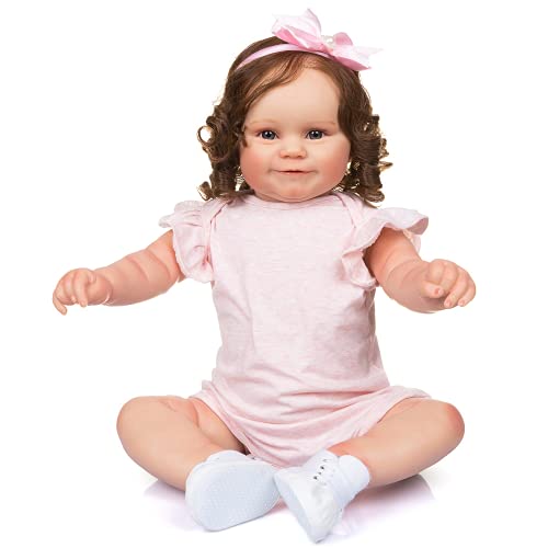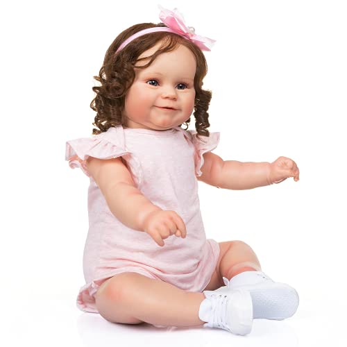 yuela Neue Maddie Two Size Version Reborn Kleinkind Beliebte süße Mädchenpuppe mit verwurzeltem braunem Haar Weicher Kuschelkörper Hochwertige Puppe (50cm)