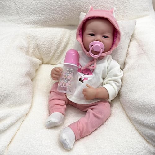 Silikonbabys Pake:Reborn Puppen*1,Puppenoutfit*1,Saugflasche*1, Geburtsurkunde*1, Babypuppe realistisches Neugeborenes ist perfekt für ein Geschenk.