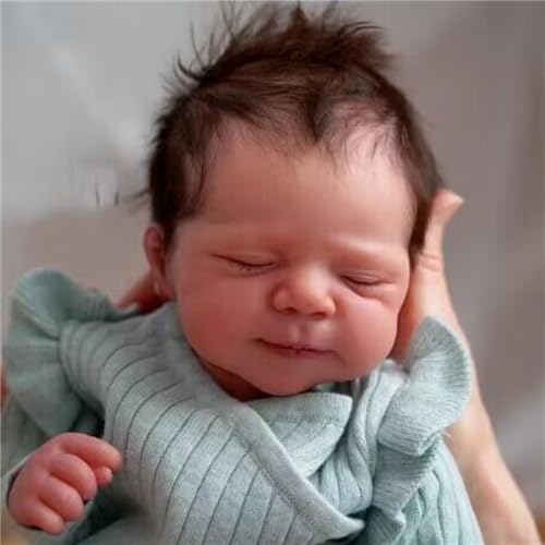 Neugeborene Vollsilikon-Babys:Diese Baby-Puppe hat lebendige und niedliche schlafende Gesicht sieht aus wie ein echtes Baby, das in einem so süßen Traum ist. Die weichen Haare und Wimpern, lebensechte Falten an den Händen und Füßen machen es sehr realistisch