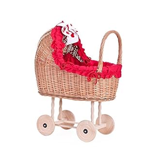 €139,00Produkt kaufene-wicker24 DESAYER PUPPENWAGEN AUS WEIDE MIT LEINEN BETTWÄSCHE, Spielzeug AUS WEIDEN, NATÜRLICHE KINDERSPIELZEUG (Rot), 48×28 H47